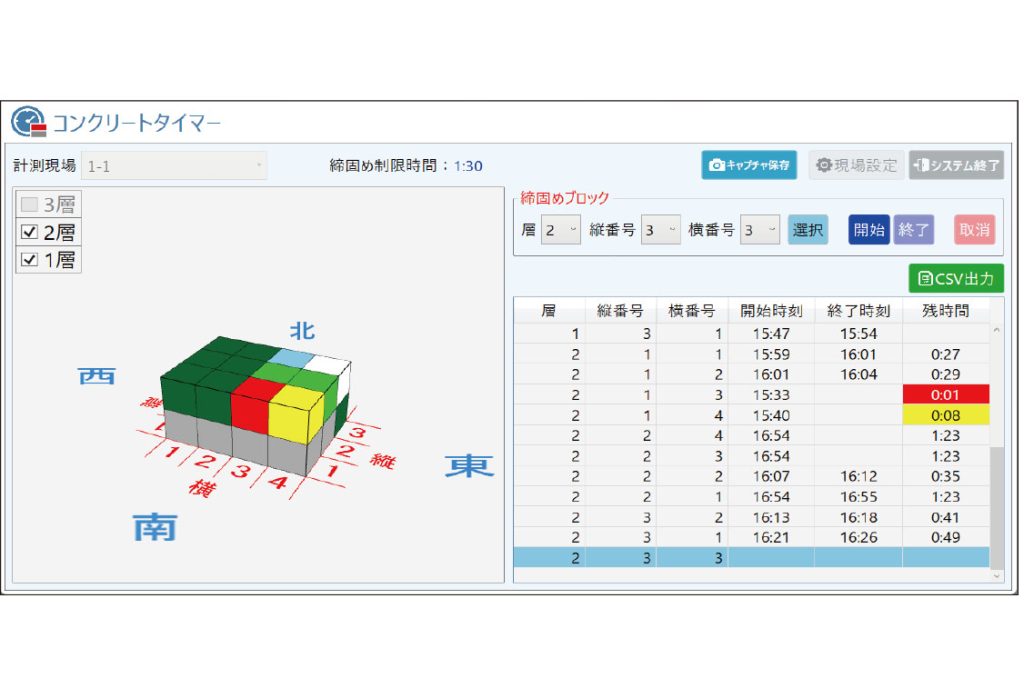 打設箇所をブロックで確認、管理することができます。垂直方向の打重ねも立体的に表示するので、作業の現状を把握できます。